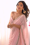 Denouement 1 Minute Ready To Wear Pink Georgette Saree