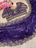 Designer Purple Fendy Silk Party Wear Saree with Stitched Embroidered Blouse