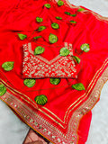 Designer Red Rangoli Silk Party Wear Saree with Unstitched Blouse