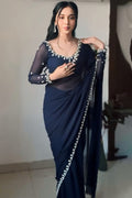 Entrancing 1 Minute Ready To Wear Navy Blue Georgette Saree