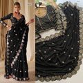 Exclusive Black Georgette Silk Party Wear Saree with Stitched Blouse