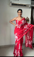 Gleaming 1 Minute Ready To Wear Red Georgette Saree