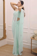 Gratifying 1 Minute Ready To Wear Turquoise Georgette Saree