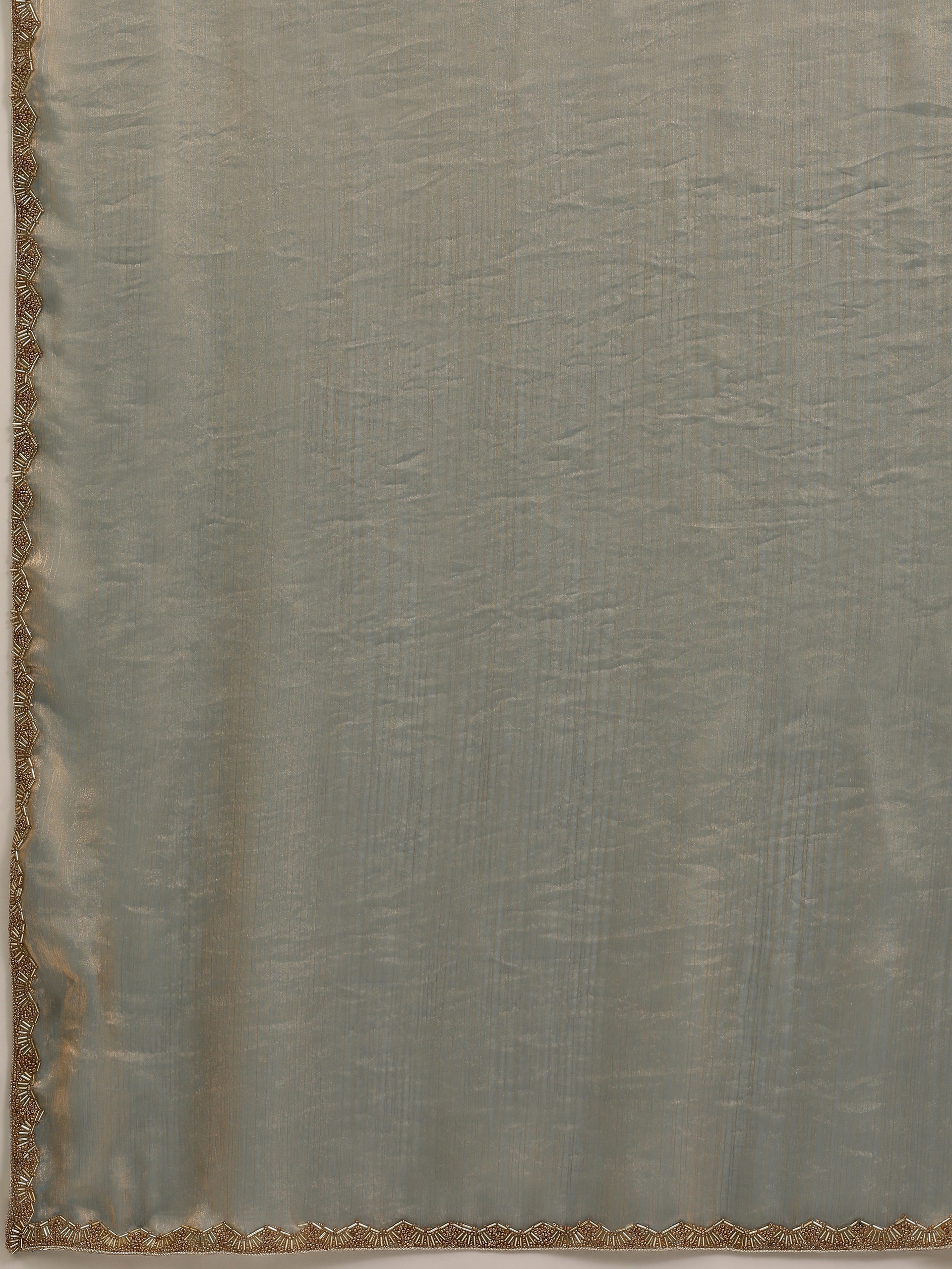 A refined steel grey satin silk saree designed for timeless elegance. The soft luminous drape and delicate embellished border create a sophisticated look, making it perfect for evening parties, receptions, and festive celebrations.
