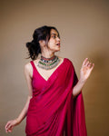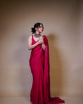 Premium Rani Pink Fendy Chiffon Ready to Wear Saree with Unstitched Blouse