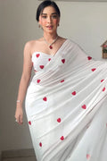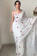 Super classy 1 Minute Ready To Wear White Georgette Saree