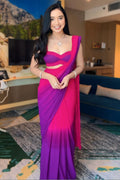 Twirling 1 Minute Ready To Wear Pink and Purple Georgette Saree
